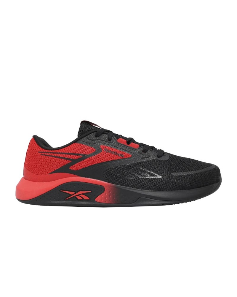 Dale energía a cada entrenamiento. Las Reebok Nanoflex TR 3 para hombre están diseñadas para transicionar sin esfuerzo desde plataformas de levantamiento hasta sesiones de cardio de alta intensidad. Esta edición cuenta con una parte superior textil negra transpirable, con superposiciones sin costuras estratégicas que ofrecen un ajuste flexible y seguro, que se mueve contigo. Rematadas con un impactante detalle en rojo Sport en el talón y la entresuela, estas zapatillas brindan el equilibrio perfecto entre estabilidad bajo el pie y amortiguación reactiva, ideales para entrenamientos durante todo el día.